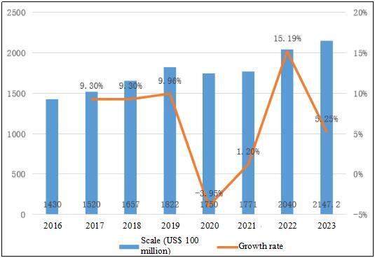 Globally, the API market has gradually recovered its growth after experiencing the impact of the COVID-19 in 2020. Affected by the COVID-19, the global API market size in 2020 has declined compared with 2019, from US$ 182.2 billion to US$ 175 billion, with a decrease of 3.95%; But soon, the market resumed growth from 2021, with the global API market size reaching US$ 204 billion in 2022 and US$ 214.72 billion in 2023.