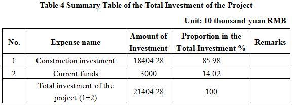 The total investment of the project is 214,042,800 yuan, including the construction investment of 184,042,800 yuan and current funds of 30 million yuan.