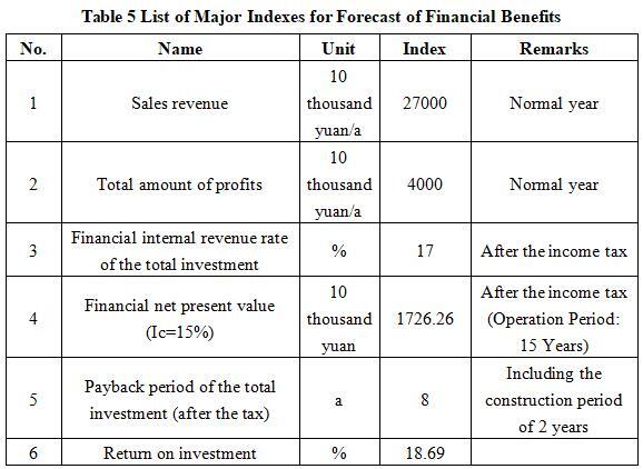 After the project reaches the production capacity, its annual sales income will be 270 million yuan, its profit will be 40 million yuan, its investment payback period will be 8 years (after the tax, including the construction period of 2 years), and its investment profit rate will be 18.69%.