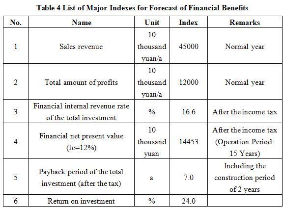 After the project reaches the production capacity, its annual sales income will be 450 million yuan, its profit will be 120 million yuan, its investment payback period will be 7.0 years (after the tax, including the construction period of 2 years), and its investment profit rate will be 24.0%.