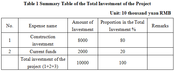 1.3 Total investment of the project and capital raising