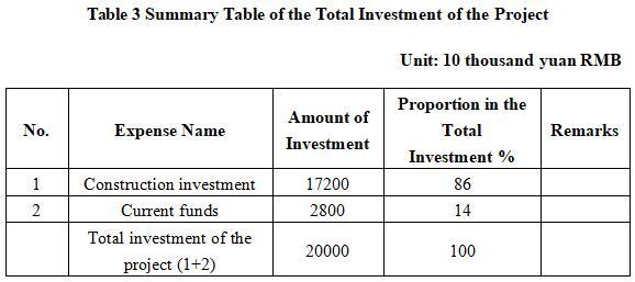 The total investment of the project is 200 million yuan, including the construction investment of 172 million yuan, and current funds 28 million yuan.