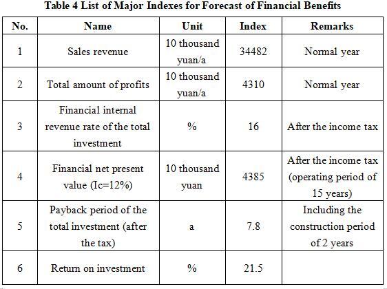 After the project reaches the production capacity, its annual sales income will be 344.82 million yuan, its profit will be 43.1 million yuan, its investment payback period will be 7.8 years (after the tax, including the construction period of 2 years), and its return on investment will be 21.5%.