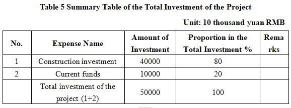 The total investment of the project is 500 million yuan, including the construction investment of 400 million yuan, and current funds 100 million yuan.
