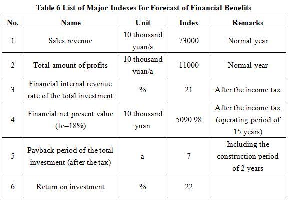 After the project reaches the production capacity, its annual sales income will be 730 million yuan, its profit will be 110 million yuan, its investment payback period will be 7 years (after the tax, including the construction period of 2 years), and its return on investment will be 22%.