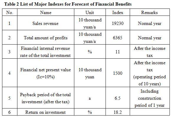 After the project reaches the production capacity, its annual sales income will be 192.3 million yuan, its profit will be 63.65 million yuan, its investment payback period will be 6.5 years (after the tax, including construction period of 1 year), and its return on investment will be 18.2%.