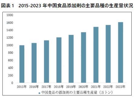 食品添加物は現代食品工業の魂と呼ばれ、食品工業に多くのメリットをもたらすことができ、例えば防腐剤は微生物による食品腐敗変質を防止し、食品の保存期間を延長することができる、酸化防止剤は、食品の安定性と貯蔵性を提供するために、食品の酸化変質を阻止または遅らせることができ、着色剤、香料などは食品の感覚品質を明らかに高め、人々の異なる需要を満たすことができる。これらの優位性により、食品工業における食品添加剤の応用はますます広くなり、食品工業の中で最も活発で、発展が最も速い業界の一つとなっている。データによると、2015年から2022年までの中国の食品添加物の主要品種の生産量は持続的な増加動向を維持し、2023年の生産量は1611万トンに増加したという。