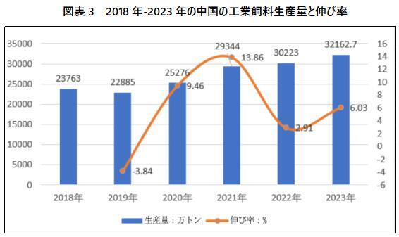 中国の飼料集約化、規模化の発展速度はますます速くなっている。飼料協会の統計によると、2018年から2023年にかけて、中国の飼料総生産量は23763万トンから32162.7万トンに増えた。