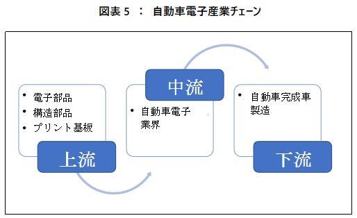 産業チェーンから見ると、自動車電子業界の上流産業は主に自動車電子部品及び部品サプライヤーであり、主にデジタル部品、構造部品及びプリント基板(PCB)が含まれている;中流産業は自動車電子製造業であり、ボディ電子制御システムと車載電子システムの2種類に分けることができる;下流産業は完成車製造分野である。