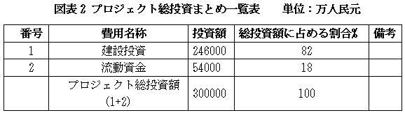 このプロジェクトの総投資額は300000万元、その内、建設投資は246000万元、流動資金は54000万元である。