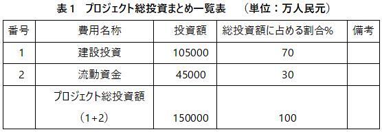 プロジェクト総投資額はは150000万元、その内、建設投資額は105000万元。