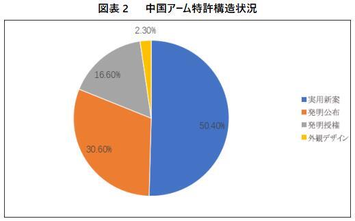 中国のアーム技術は海外に比べてスタートが遅い。2012年以降、アーム分野で徐々に技術的な突破を達成し、年間特許出願件数は飛躍的急速な伸びを見せ、急速な発展期と入った。近年、国内の関連特許出願件数は年々上昇し、2016年の1955件から2020年の11387件に増えた。不完全な統計によると、現在、アーム特許の数のうち、実用新型特許が50.4%、発明公布特許が30.6%、発明授権特許が16.6%、意匠特許が2.3%を占めている。
