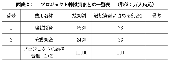 本プロジェクト総投資額は11000万元、その内、建設投資額8580万元、流動資金2420万元。