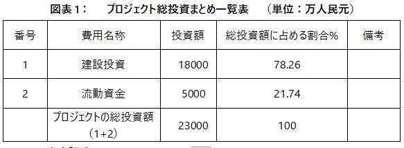 本プロジェクト総投資額は23000万元、その内、建設投資額18000万元、流動資金5000万元。