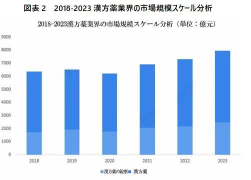 漢方薬業界の中流は主に漢方薬と漢方薬の錠剤である。中国漢方薬協会のデータによると、2018-2023年、中国の漢方薬業界の規模は全体的に波動的に成長し、2023年の市場規模は8000億元近くに達し、伸び率は医薬工業全体の中でリードしている。