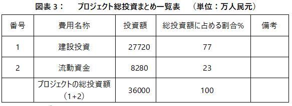 本プロジェクト総投資額は36000万元、その内、建設投資額27720万元、流動資金8280万元。