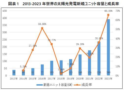 国際エネルギー局(IEA)の統計データによると、世界の光発電の年間新規設備容量も急速な増加傾向を維持している。世界の光発電の年間新規設備容量は2013年38GWから2023年390GWに増加し、複合年平均成長率は27.63%に達した。