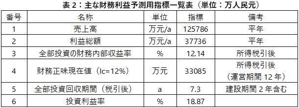 プロジェクトの量産後、年間売上高は125786万元、利益37736万元、投資回収期間7.3年(税引後、建設期間2年含む)、投資利益率18.87%。