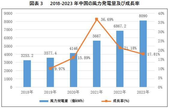 中国は風力発電技術の研究開発と生産への投資を継続的に増やし、技術レベルと生産能力を向上させ、世界をリードする風力発電製造国になった。中国世界最大の風力発電市場として、陸上風力発電と洋上風力発電の両方に大きな可能性があり、近年急速に発展している。2022年には、中国の風力発電量は6867.2億kWhに達し、前年比21.18%増加した。2023年には、全国の風力発電量は8090億kWhに達し、前年比17.81%増加した。