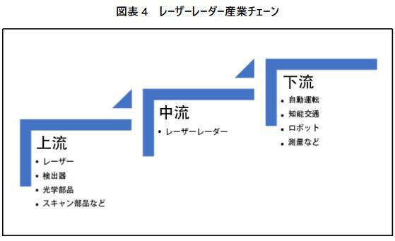 レーザーレーダーは、自動運転、工業自動化、消費電子などの分野における重要なセンサーであり、その産業チェーンは、上流のコア部品供給、中流のシステム製造、及び下流の応用市場の3つの段階に分類される。