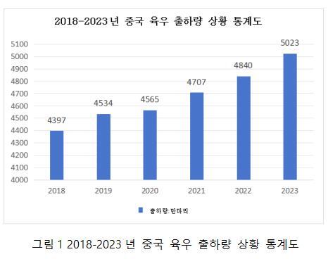 중국은 세계적인 육우 사육 및 소고기 생산 대국이다. 최근 몇 년간 중국의 육우 출하량은 지속적으로 증가하며, 육우 산업의 안정적인 발전을 위한 견고한 기반을 제공하고 있다. 중상산업연구원이 발표한 《2025-2030년 중국 육우 사육 산업 전망 예측 및 전략적 투자 기회 분석 보고서》에 따르면, 2023년 중국의 육우 출하량은 5,023만 두로, 전년 대비 183만 두 증가하며 3.8%의 성장률을 기록했다. 이는 2017년 이후 가장 높은 출하량이며, 매년 꾸준히 증가하여 처음으로 5,000만 두를 돌파했다.