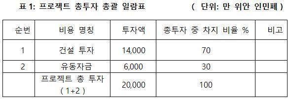 1.3 프로젝트 총투자 및 자금조달