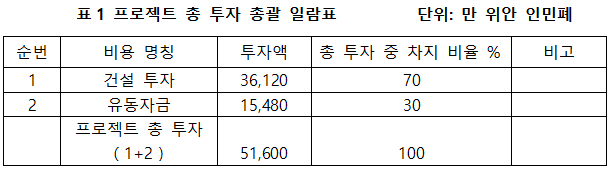 1.3. 프로젝트 총투자 및 자금조달