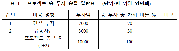 1.3 프로젝트 총 투자 및 자금조달