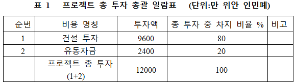 1.3 프로젝트 총 투자 및 자금조달