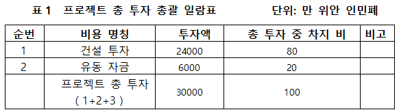 1.3 프로젝트 총 투자 및 자금조달