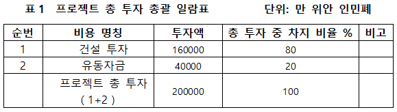 1.3 프로젝트 총 투자 및 자금조달
