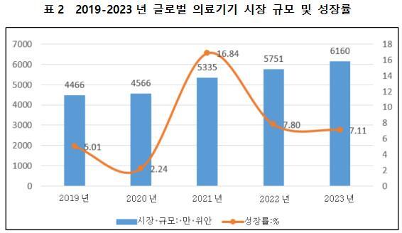 의료기기 산업은 인간의 생명과 건강에 직결되는 분야로, 시장 수요가 높은 탄력성을 가지며 경제 주기 변동의 영향을 비교적 적게 받기에 산업의 안정성이 상대적으로 높다. 글로벌 사회 경제 발전과 인구 구조 변화에 따라 고령화 심화, 만성 질환 발병률 증가, 주민들의 건강 관심도 상승 및 개발도상국의 경제 발전 및 소비력 향상 등의 요인이 복합적으로 작용하면서 글로벌 의료기기 시장은 지속적으로 성장하고 있다. 2023년에 6,160억 달러에 달했으며, 전년 동기 대비 7.11% 성장하였다.