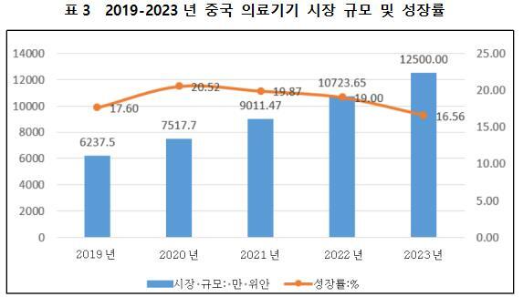 2023년 중국 의료기기 산업 시장 규모는 12,500억 위안에 달했으며, 전년 동기 대비 17% 성장하였다. 글로벌 의료기기 시장과 비교했을 때, 중국 의료기기 시장의 성장 속도는 글로벌 의료기기 산업 성장률의 2.4배에 달하며, 중국 국내 의료기기 시장이 매우 넓은 성장 가능성을 보유하고 있다.
