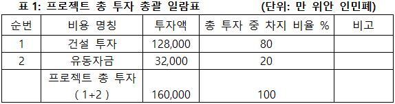 1.3 프로젝트 총투자 및 자금조달