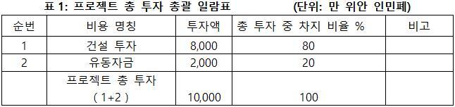 1.3 프로젝트 총 투자 및 자금조달