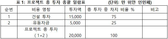 1.3 프로젝트 총 투자 및 자금조달