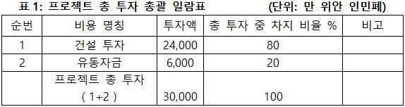 1.3 프로젝트 총 투자 및 자금조달