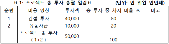 프로젝트의 총 투자는 50,000만 위안이며, 그 중 건설 투자가 40,000만위안이다.