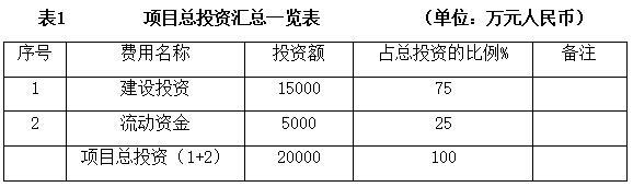 项目总投资20000万元,其中建设投资15000万元。