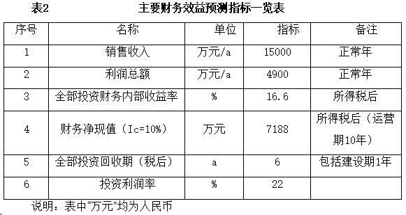 项目达产后,年销售收入15000万元,利润4900万元,投资回收期6年(税后,含建设期1年),投资利润率22%。