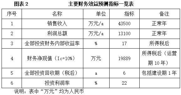 项目达产后,年销售收入43500万元,利润13100万元,投资回收期6年(税后,含建设期1年),投资利润率22%。