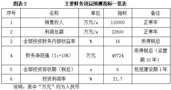 项目达产后,年销售收入110000万元,利润32600万元,投资回收期6年(税后,含建设期1年),投资利润率21.7%。