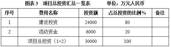 本项目总投资为30000万元,其中:建设投资24000万元,流动资金6000万元。