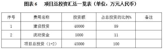 项目总投资为45000万元,其中建设投资40000万元,流动资金5000万元。