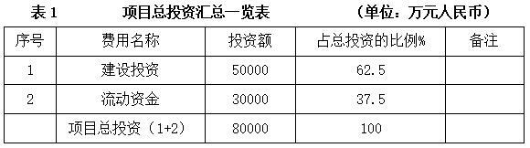 项目总投资80000万元,其中建设投资50000万元。