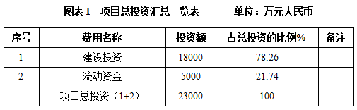 本项目总投资为23000万元,其中:建设投资18000万元,流动资金5000万元。
