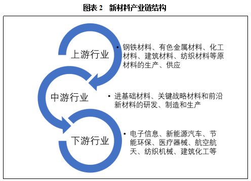 新材料行业产业链上游主要为原材料的生产和供应,原材料包括但不限于钢铁材料、有色金属材料、化工材料、建筑材料、纺织材料等,其中化工材料包括原油、煤炭、天然气、化学助剂、单体中间物等。产业链中游为新材料的研发、制造和生产环节,涵盖了多种新材料类型,包括先进基础材料、关键战略材料和前沿新材料等。这些新材料在性能、功能和应用领域上各具特色,广泛应用于多个下游行业。产业链下游涵盖了电子信息、新能源汽车、节能环保、家电行业、医疗器械、航空航天、纺织机械、建筑化工等多个行业。