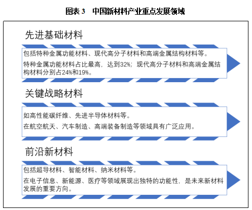 中国重点发展三大类新材料,包括先进基础材料、关键战略材料和前沿新材料。每个大类下又包含具体的细分领域新材料,范围广泛。