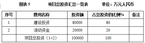 本项目总投资为100000万元,其中:建设投资80000万元,流动资金20000万元。