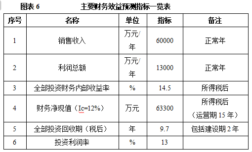 项目达产后,年销售收入60000万元,利润13000万元,投资回收期9.7年(税后,含建设期2年),投资利润率13%。